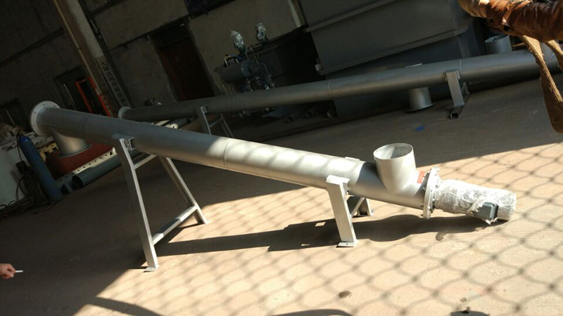 當(dāng)螺旋軸轉(zhuǎn)動(dòng)時(shí),由于物料的重力及其與槽體壁所產(chǎn)生的摩擦力,使物料只能在葉片的推送下沿著輸送機(jī)的槽底向前移動(dòng),其情況好像不能旋轉(zhuǎn)的螺母沿著旋轉(zhuǎn)的螺桿作平移運(yùn)動(dòng)一樣。物料在中間軸承的運(yùn)移,則是依靠后面前進(jìn)著的物料的推力。所以,物料在輸送機(jī)中的運(yùn)送,完全是一種滑移運(yùn)動(dòng)。為了使螺旋軸處于較為有利的受拉狀態(tài),一般都將驅(qū)動(dòng)裝置和卸料口安放在輸送機(jī)的同一端,而把進(jìn)料口盡量放在另一端的尾部附近。 旋轉(zhuǎn)的螺旋葉片將物料推移而進(jìn)行輸送,使物料不與螺旋輸送機(jī)葉片一起旋轉(zhuǎn)的力是物料自身重量和螺旋輸送機(jī)機(jī)殼對(duì)物料的摩擦阻力。葉片的面型根據(jù)輸送物料的不同有實(shí)體面型、帶式面型、葉片面型等型式。螺旋輸送機(jī)的螺旋軸在物料運(yùn)動(dòng)方向的終端有止推軸承以隨物料給螺旋的軸向反力,在機(jī)長(zhǎng)較長(zhǎng)時(shí),應(yīng)加中間吊掛軸承。