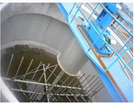 刮臂在傳動(dòng)裝置帶動(dòng)下繞池中心軸線旋轉(zhuǎn),刮臂上的刮板將沉積在池底的污泥由外向內(nèi)推向池心集泥坑。